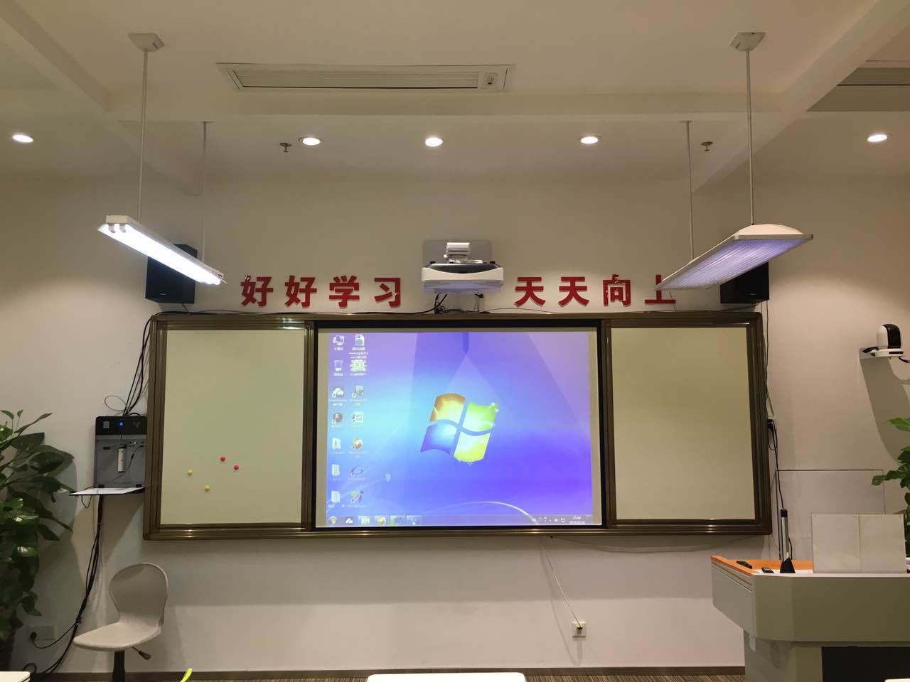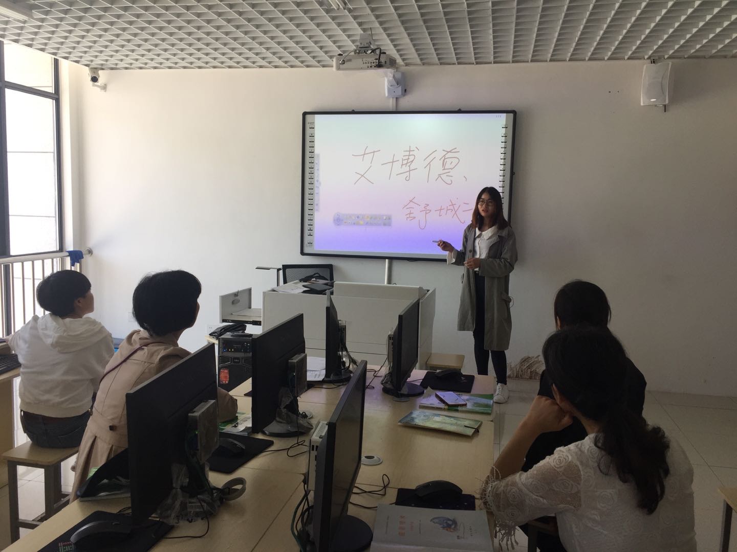 超短焦激光投影機提供了出色的顯示效果,無論從亮度還是顯示色彩上(shàng),都能(néng)將教學內容完美的(de)呈現出來。流暢的人(rén)機交互體驗讓老師們對電(diàn)子白板的操作更加方(fāng)便快捷(jié),學校更是製定並推行了眾多創新的教學(xué)模式,形成了一套完整(zhěng)的(de)信息化教(jiāo)學體係。