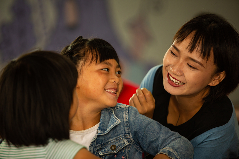 誌願者引導小朋友(yǒu)們做互動遊戲