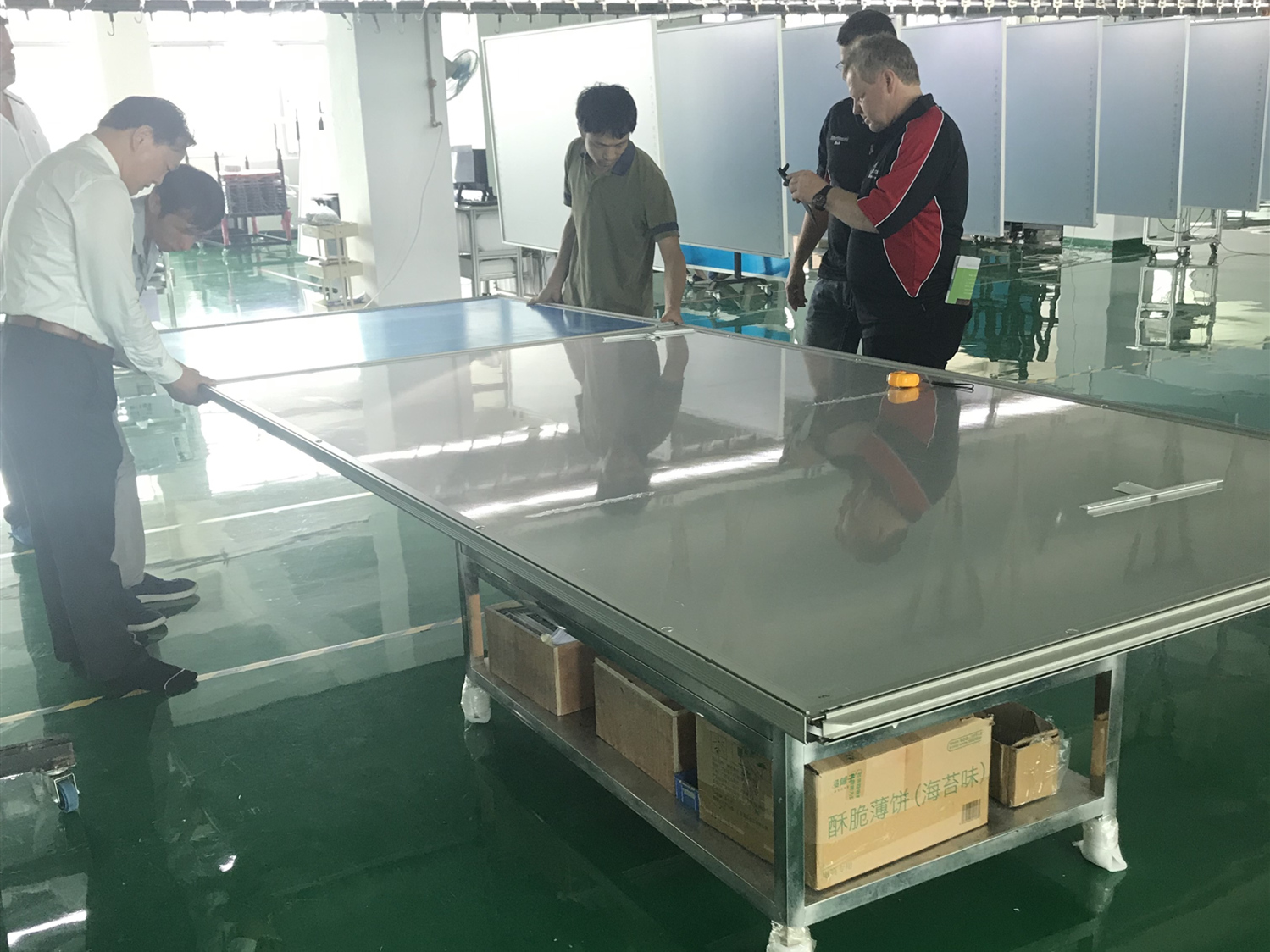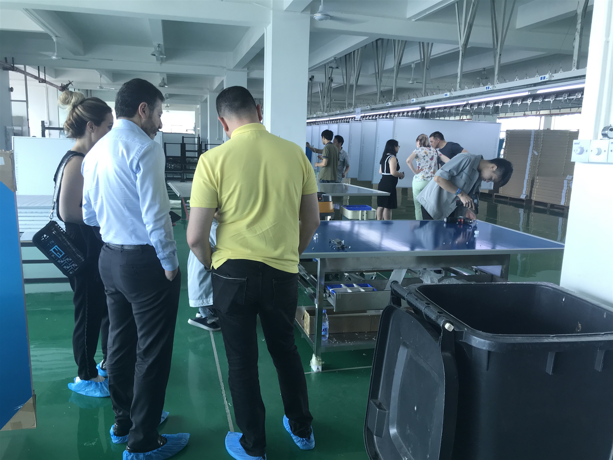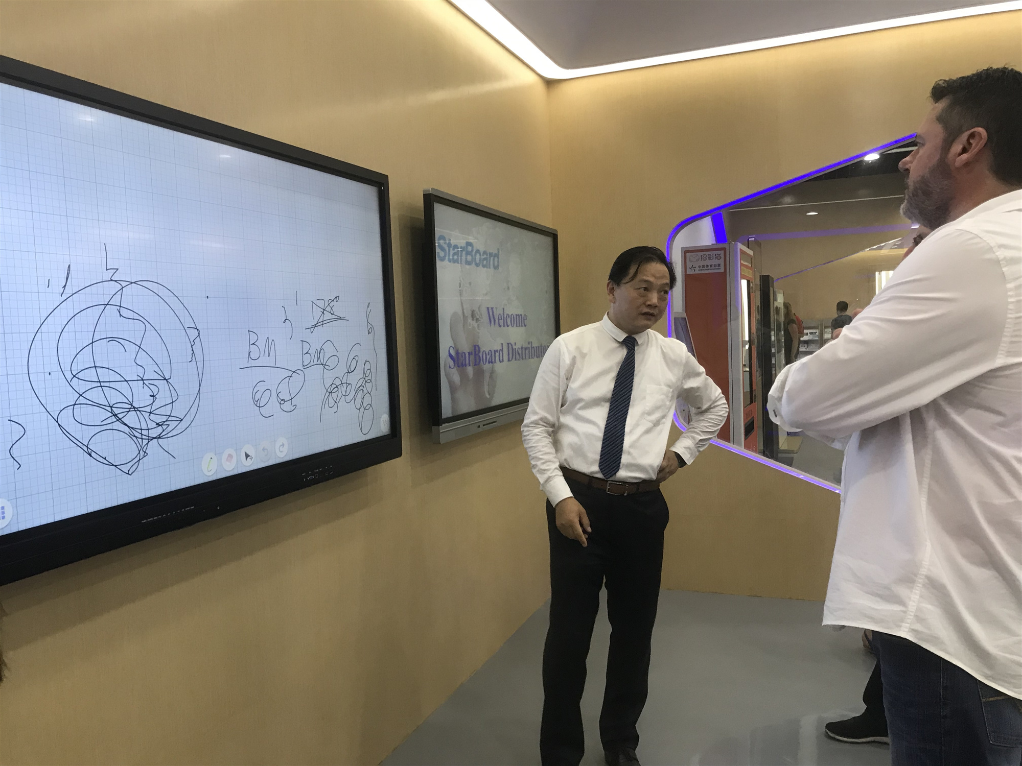 在參觀期間,歐洲(zhōu)同事對公司產品(pǐn)的實用性及操(cāo)作(zuò)性非常感興趣,由外貿經理依次對產品給他們進行了詳細的講(jiǎng)解(jiě)。從紅外觸摸方案與電容觸摸方案的對比,到電子白板觸摸一體機白板一體機激光投影機等產品的演變曆程、功能、特性的介紹,最後對大(dà)家提出的問題進行了一一解答。