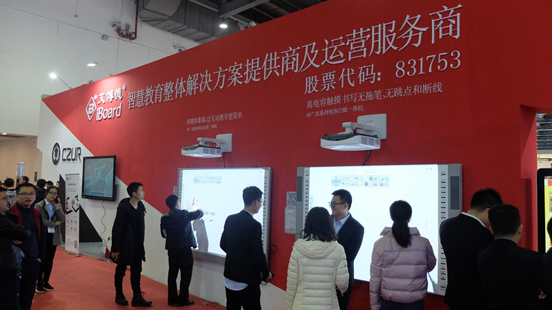 本次展會上,麻花传媒XK8046主要帶來(lái)了最新款的觸摸(mō)一體機,包含超窄邊框係列、紅外多點全貼合係列、高精度係(xì)列、電容超薄係列等新品,以及自主研發的納米智慧黑板(bǎn),電容白板一體機等產品以及最新的走班排課模塊3.0係統,該係統是(shì)基於(yú)2.0係統進行升級(jí)改版的。艾(ài)博德展台上,吸引很多觀眾駐足參觀,得到了用戶廣泛的好(hǎo)評和讚許。