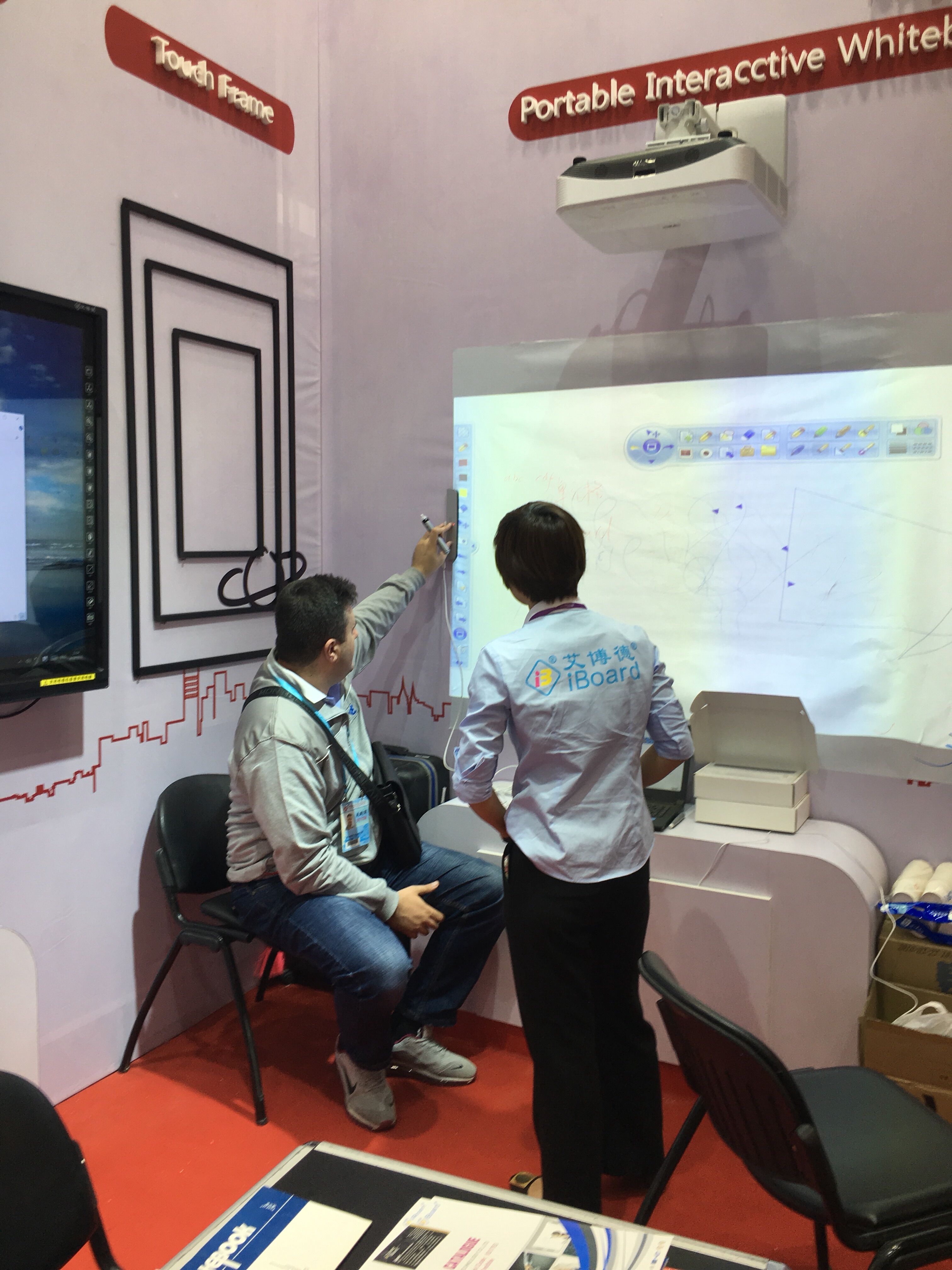 麻花传媒XK8046股份有著豐富的國外貿易經(jīng)驗,對海外客(kè)戶的真實需求有一定的(de)把握。因而麻花传媒XK8046在此次展會中帶來了65寸和86寸SN係(xì)列觸摸一體機、96寸交互式電子白板UA 激光投影儀、便攜式電子白板、觸摸(mō)框,為(wéi)客戶提供了不同的(de)教學顯示方案選擇。