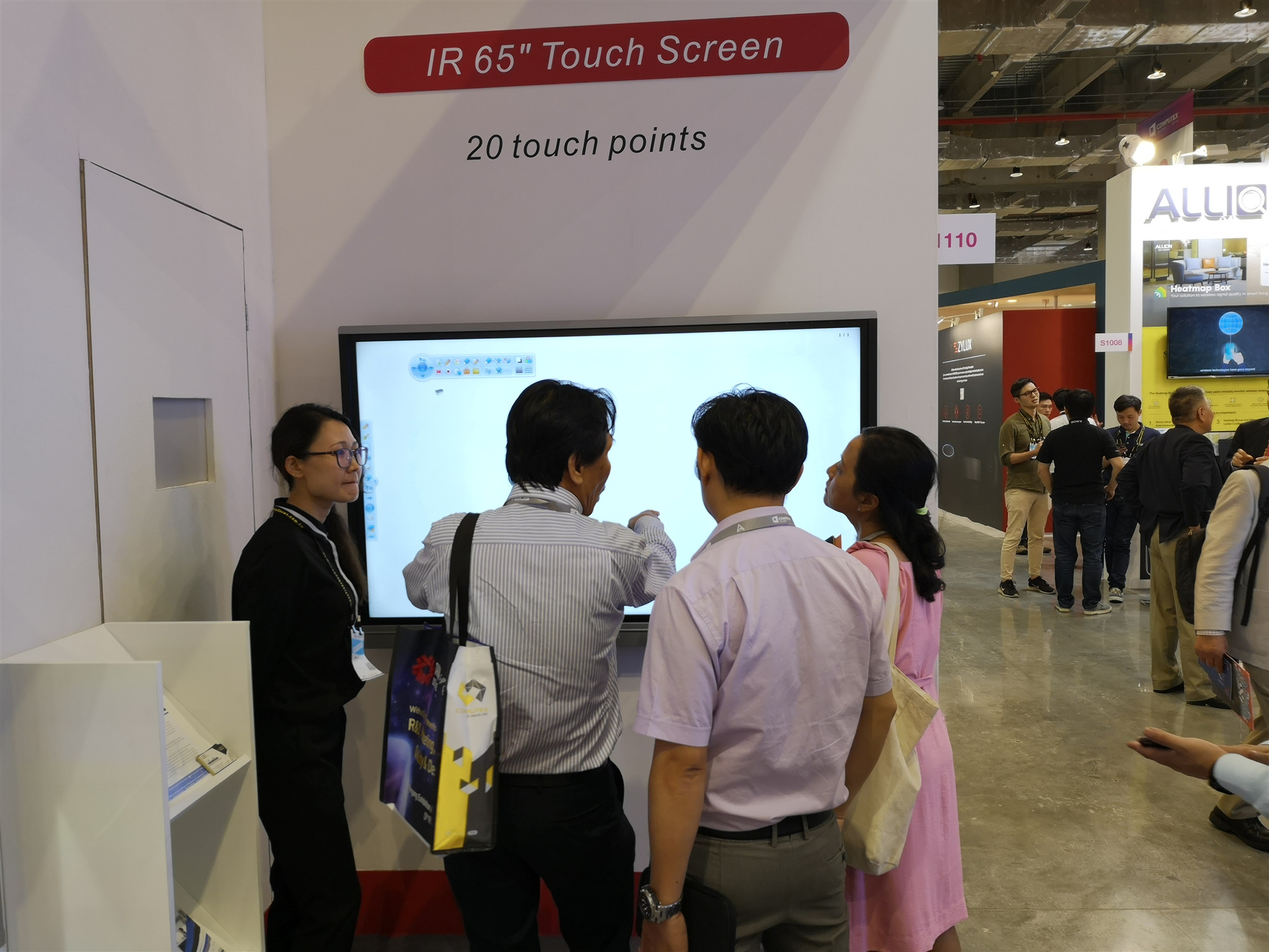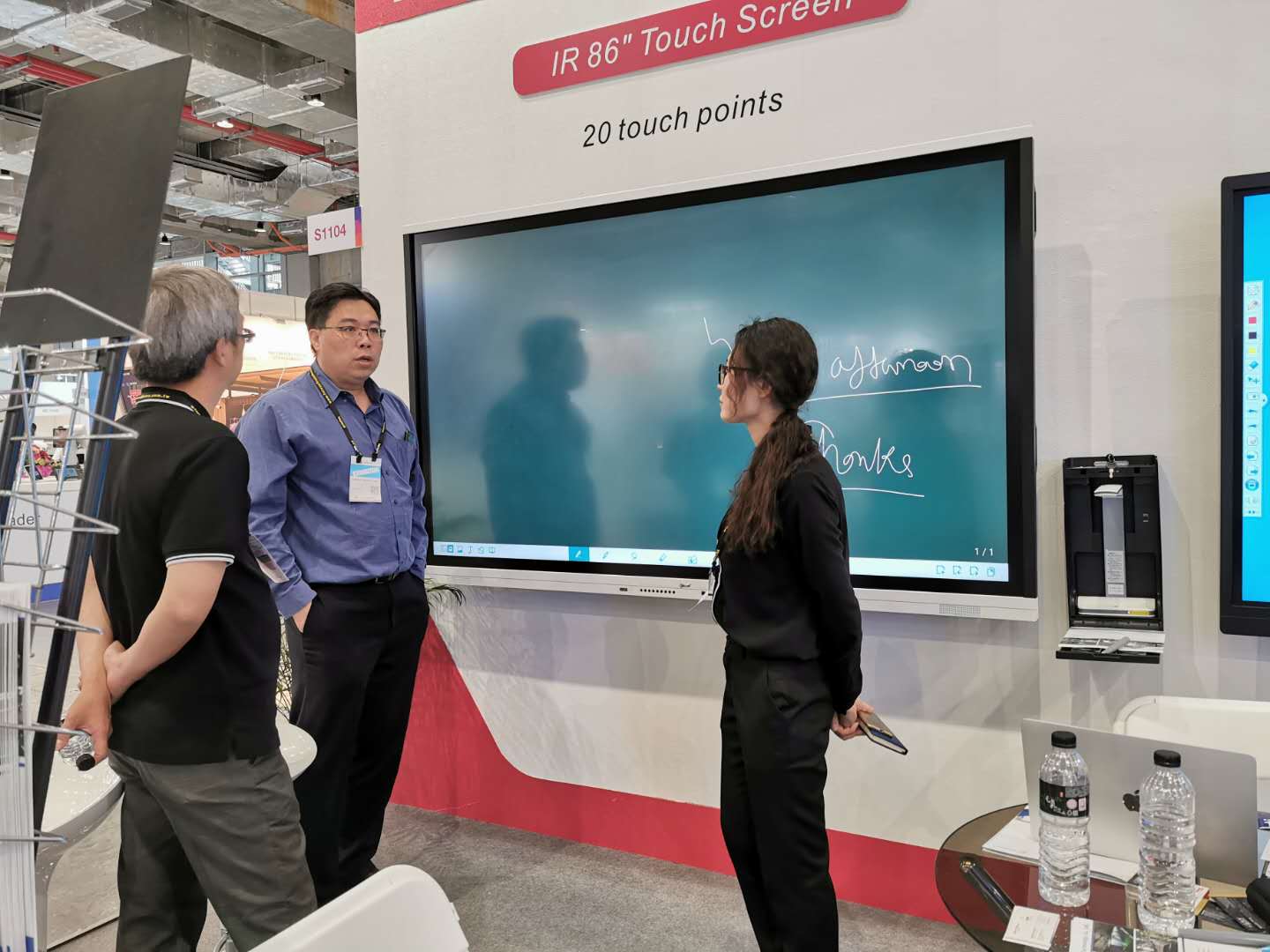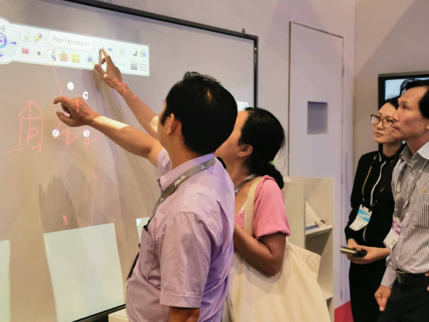iBoard最新(xīn)款 90”交互式電子白板同時支持20點觸控,搭配純激光光源的超短焦激光投影機,色彩逼(bī)真豔麗、明亮清晰,節(jiē)能環保無毒無(wú)害,使用壽命高達20000小時,不存在更(gèng)換燈泡光源的問題,高效防塵,更加穩(wěn)定耐用,更易於安裝、管理(lǐ)。各種硬(yìng)件搭配DrawView白板教學軟件、大小屏互(hù)動軟件等組合而成的智慧教育教學環境更(gèng)是吸(xī)引現場(chǎng)觀眾紛紛前來體驗,不少(shǎo)客戶都表示(shì)艾博(bó)德的產品操作簡便,界麵友好,相比同類(lèi)教育產品更貼近實際需求!